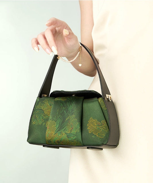 Chinese Silk Tote Print Green Handbag Style Versatile