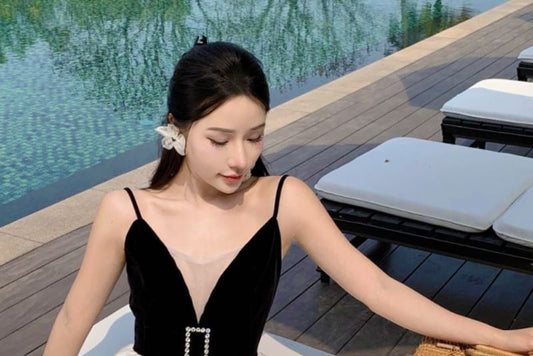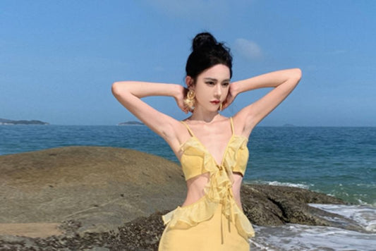 Spaghetti Strap V-Neck Plain Ruffle Cutout Tie-Up Maxi Mermaid Dress