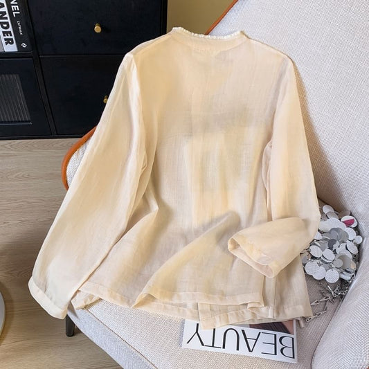 Long Sleeve Band Collar Plain Hanfu Blouse