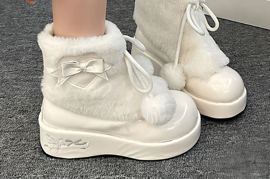Bow Pom Pom Fluffy Platform Short Snow Boots