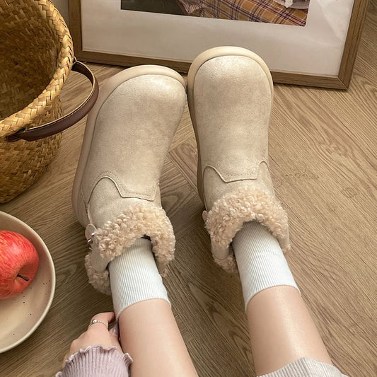Platform Fleece-Lined Faux Suede Short Snow Boots