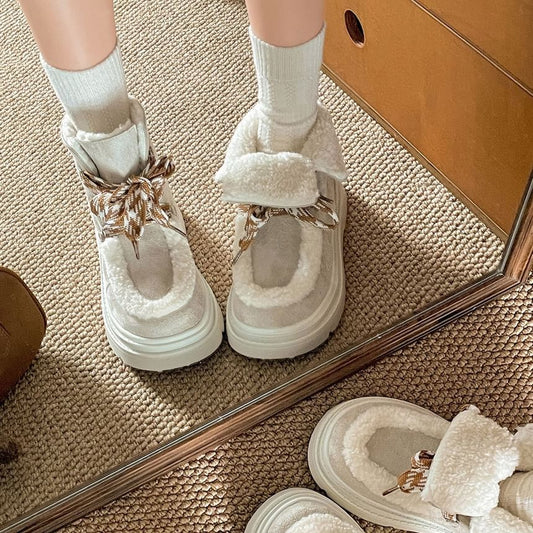 Platform Lace-Up Back Short Snow Boots