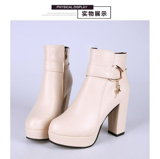 Chunky Trim Boots Lace Ankle Pointed Heel Mesh Panel