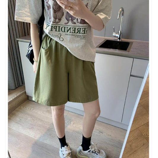 High Waist Drawstring Pocket Plain Wide Leg Gather Cuff Parachute Cargo Pants