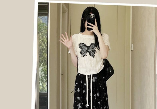 Bow Print Lace High Waist Wide Leg Sweatpants