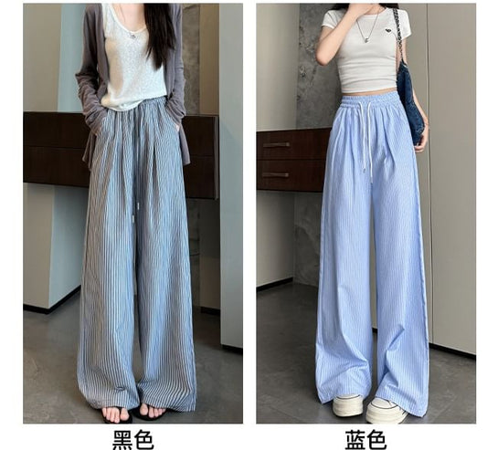Stripe High Waist Drawstring Wide Leg Sweatpants