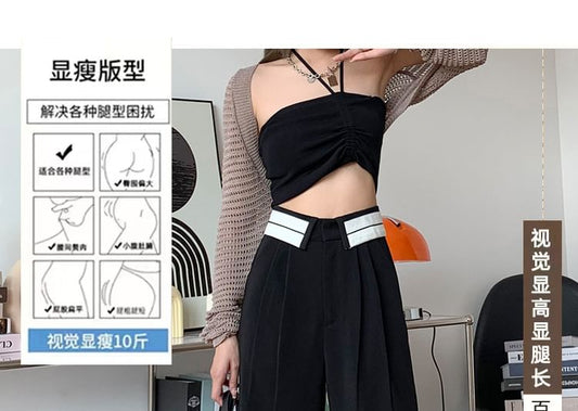 Pants High Leg Pleated Wide Waist Suit Striped