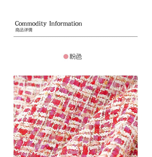 Set: Round Neck Tweed Button Jacket + High Rise Mini A-Line Skirt