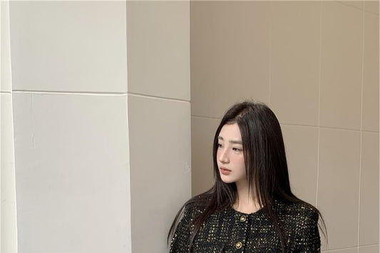 Set: Tweed Sequined Button-Up Jacket + High Rise Mini A-Line Skirt
