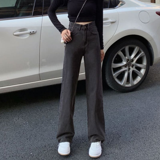 High Rise Washed Straight-Fit Wide-Leg Jeans