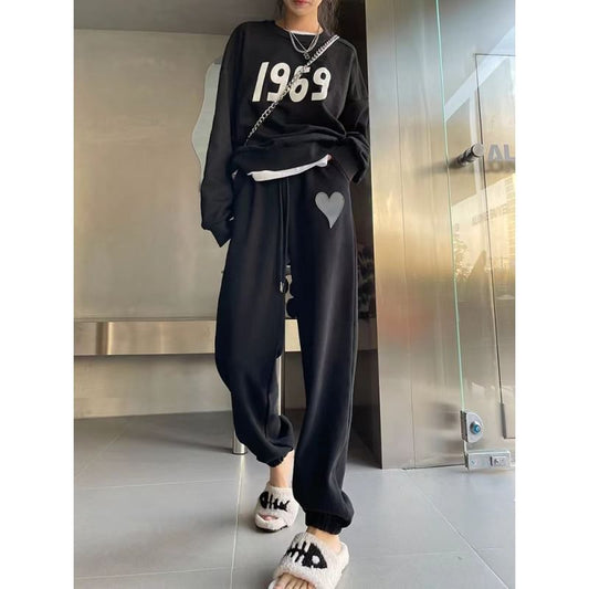 High Waist Heart Print Straight-Fit Sweat Pants