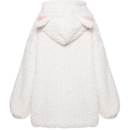Pink Black Kitty Hoodie Tie Bowknot Coat - Kimi