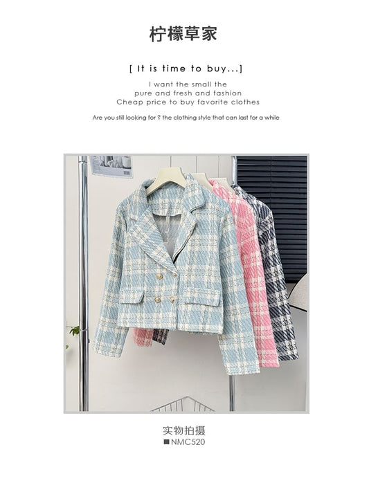 Long-Sleeve Tweed Plaid Shirt Jacket