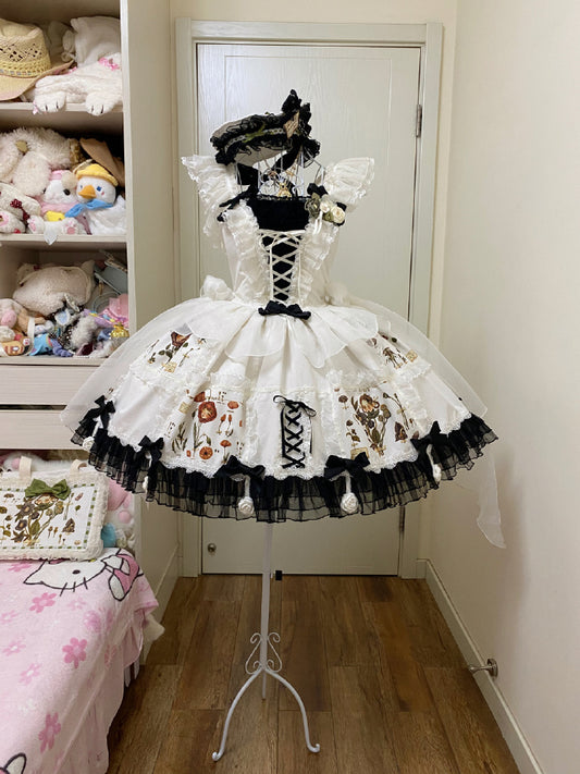 Perfect White Black Flowers Lovely Lolita Dress ON816