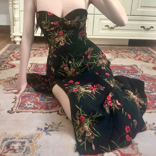 Juliette Black Floral Dress - Pink