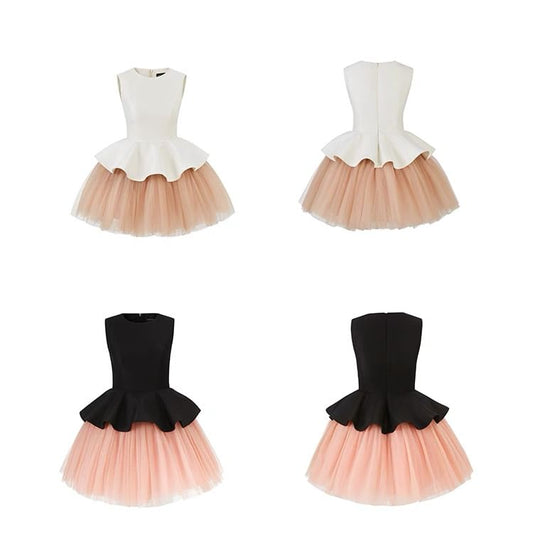 Sleeveless Crew Neck Two Tone Mesh Panel Mini A-Line Dress
