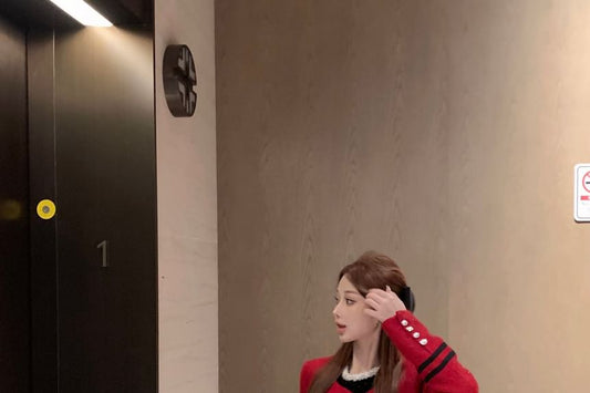 Tweed Button-Up Jacket / Long-Sleeve Sequined Ruffled Mini A-Line Layered Velvet Dress