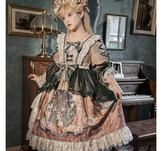 Lolita Long-Sleeve Lace-Up Waist Tiered A-Line Dress