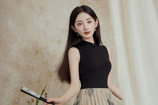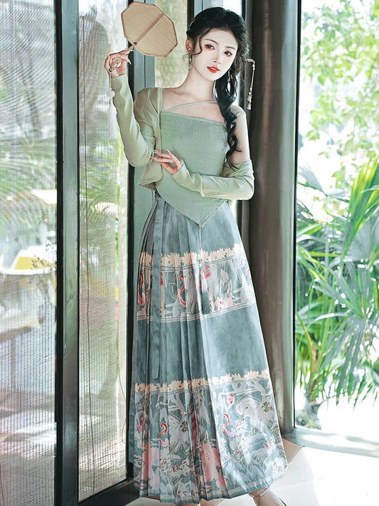 Set: Plain Camisole Top + High Waist Floral Print Midi A
