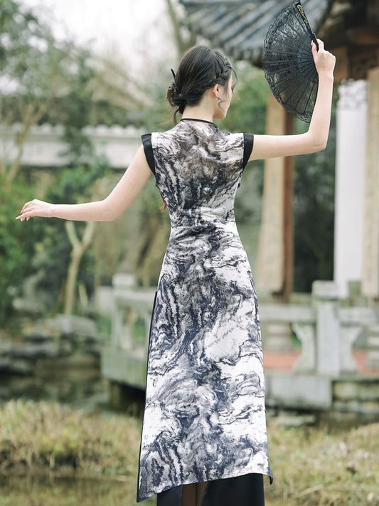 Set: Sleeveless Printed Keyhole Slit Midi Bodycon Dress + Halter