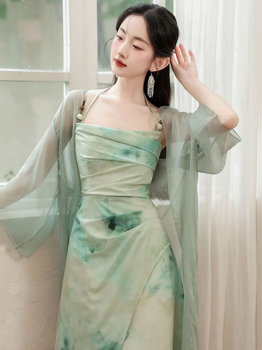 Halter Plain Maxi Sundress / Belt / Cardigan / Set