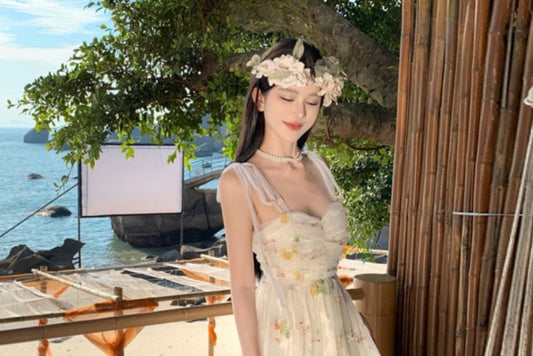 Spaghetti Strap Sweetheart Neckline Floral Embroidered Ruched Mesh Maxi A