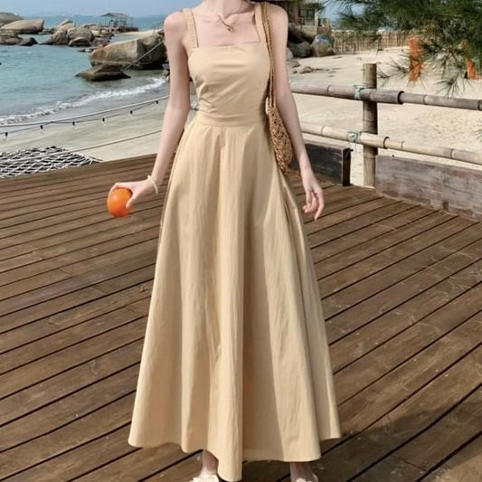 Halter Neck Plain Asymmetrical Frill Trim Open Back Midi A