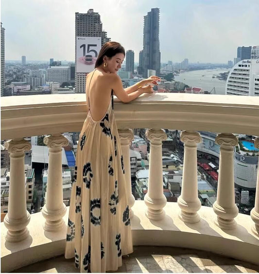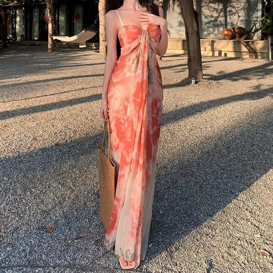 Spaghetti Strap Cowl Neck Floral Print Open Back Maxi Mermaid Dress