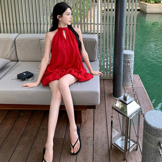 Sleeveless Cutout Plain Mini A