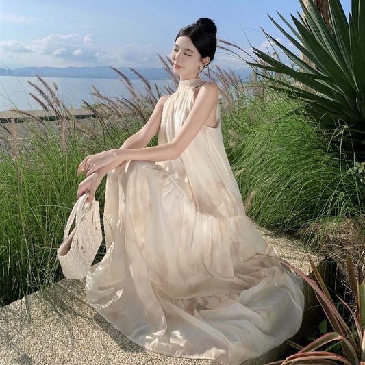 Sleeveless Halter Tie Dye Midi A