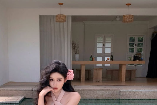 Sleeveless Halter Plain Accordion Pleated Midi A