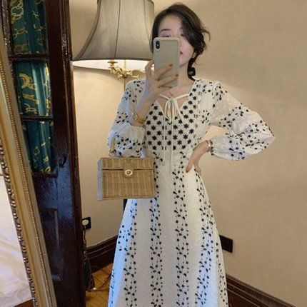 Long Sleeve Square Neck Drawstring Floral Chiffon Dress