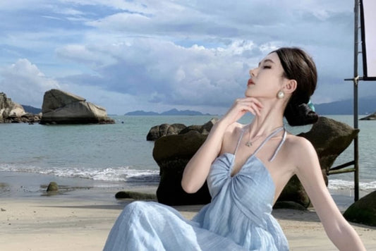 Halter Neck Backless Tie Dye Print Maxi A