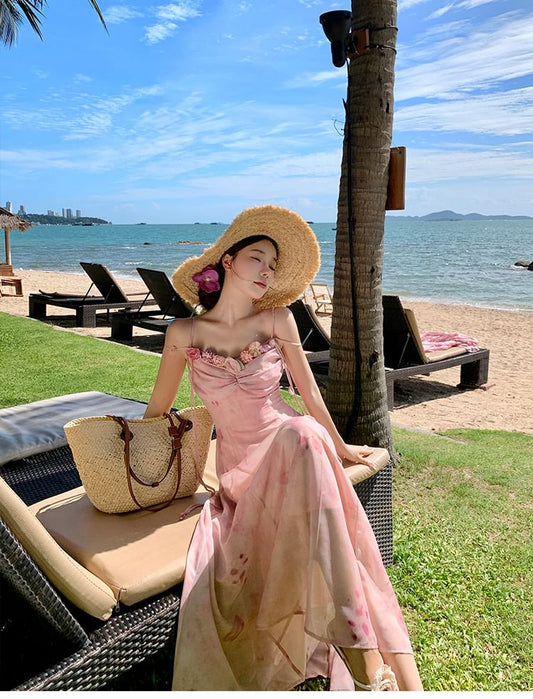 Set: Spaghetti Strap Floral Hanfu Maxi A