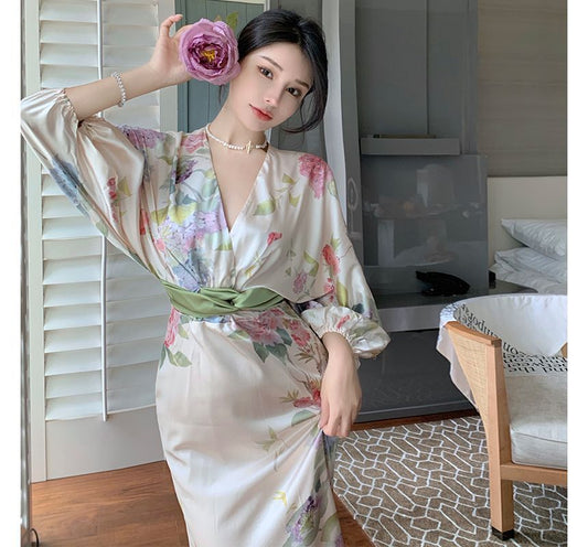 Spaghetti Strap Floral Print Ruched Bodycon Maxi Dress