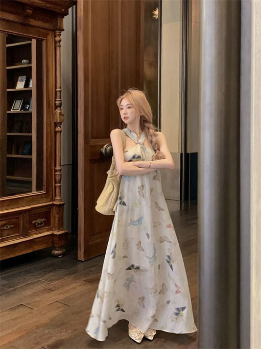 Spaghetti Strap Scoop Neck Printed Maxi A