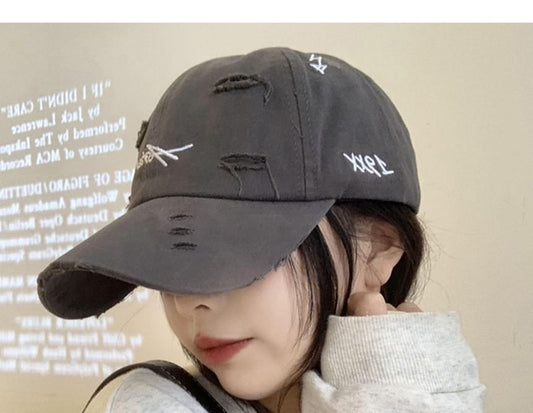 Lettering Distressed Baseball Cap Embroidered