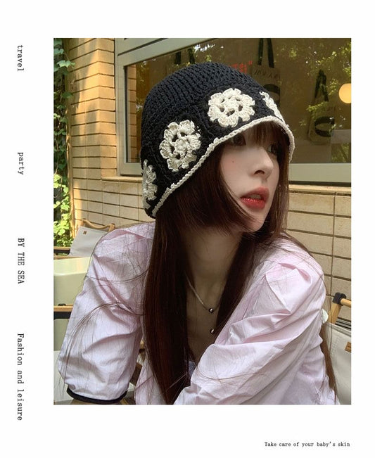 Hat Cloche Crochet Knit Floral