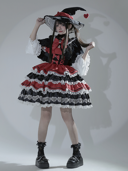 Black Red Bow with Lace Halloween Witch Hat