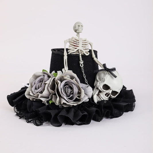 Black Floral Halloween Skeleton Mini Hat