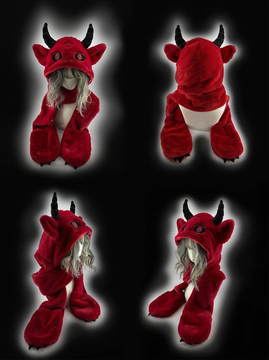 Red Devil Gothic Winter Scarf Gloves Plush Hat