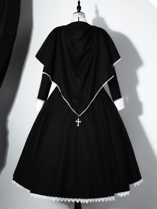 Black White Cross Embroidery Lolita Cape Dress Set