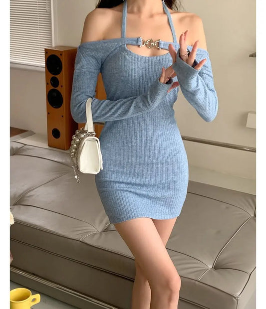 Set : Plain Ribbed Skinny Tube Dress + Plain Cape LE17
