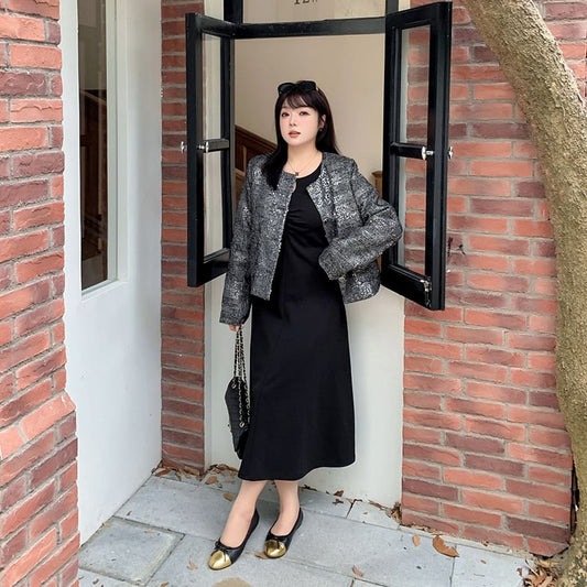 Set: Collared Button-Up Tweed Jacket + High Rise Maxi A-Line Skirt