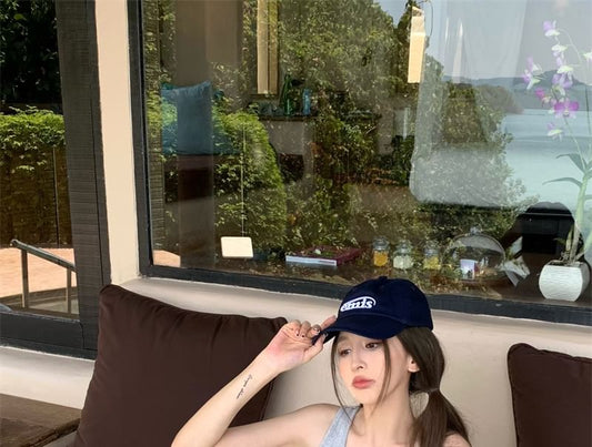 One-Shoulder Lettering Crop Tank Top