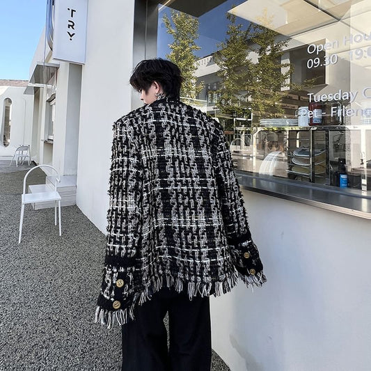 Stand Collar Fringe Tweed Button Jacket