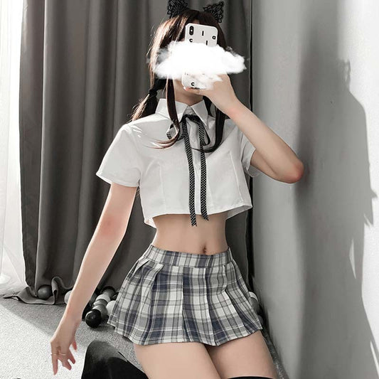 Cute Nightdress Stockings Lingerie Plaid Dress
