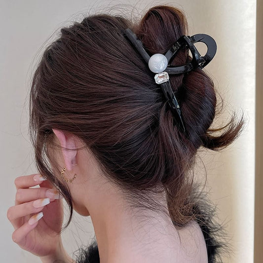 Faux Pearl Rhinestone Hair Clamp