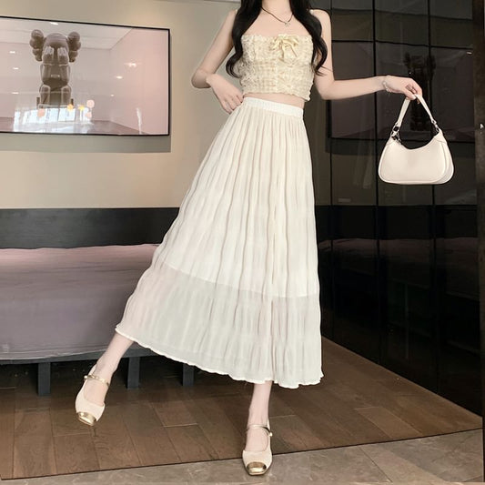 Skirt Elastic Waist Tiered Plain Midi A-Line