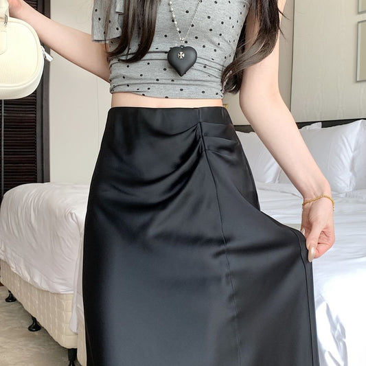 Plain A-Line High Skirt Asymmetrical Maxi Waist